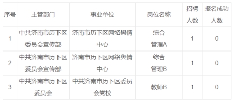 根據(jù)《2023年度濟南市歷下區(qū)事業(yè)單位綜合類崗位公開招聘工作人員公告》中“報名結束后,應聘人數(shù)未達到規(guī)定比例的招聘崗位,計劃招聘1人的,取消招聘崗位;計劃招聘2人以上的,按規(guī)定比例相應核減招聘人數(shù)。”規(guī)定,取消以下招聘崗位: