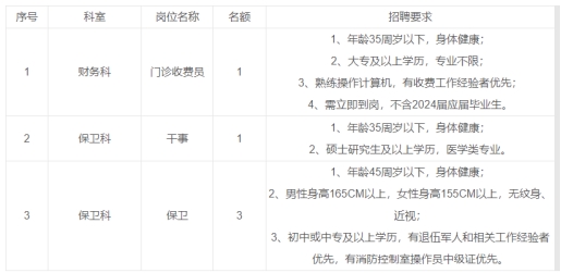 重慶市榮昌區(qū)人民醫(yī)院因業(yè)務(wù)發(fā)展需要,特向社會(huì)招聘財(cái)務(wù)科門(mén)診收費(fèi)員等3個(gè)崗位共計(jì)5名聘用制人員。
