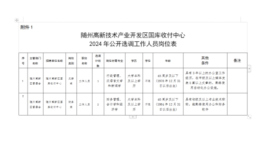附件1、隨州高新技術產業開發區國庫收付中心2024年公開選調工作人員崗位表