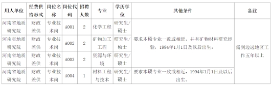 6.具備應聘崗位所需要的其他具體條件,詳見《河南省地質研究院公開招聘崗位信息表》(附件)。