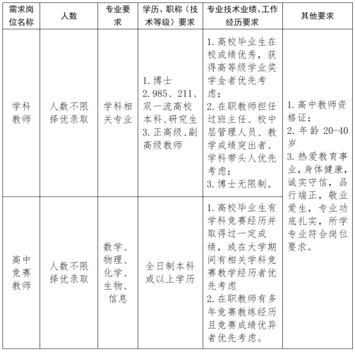 (二)招聘計劃:我校長期面向社會招聘各學(xué)科、各專業(yè)領(lǐng)域的博士及優(yōu)秀教育人才。
