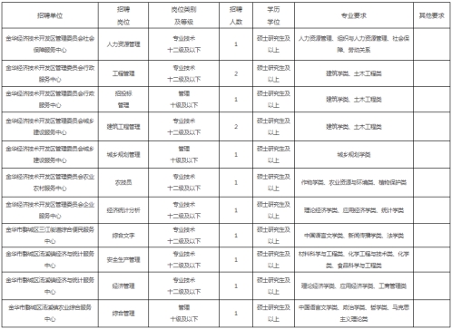 為進一步優化金華經濟技術開發區所屬事業單位人才結構,根據《浙江省事業單位公開招聘人員暫行辦法》《金華市屬事業單位公開招聘人員工作細則》規定,經研究,決定面向全國普通高校2024屆畢業生公開招聘13名事業編制工作人員。