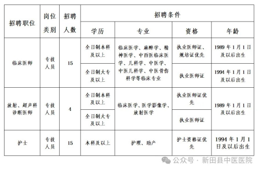 新田縣中醫醫院創建于1956年,是一所集臨床醫療救治、康復理療、教學科研、預防保健于一體的二級甲等中醫醫院。現因業務發展需要,面向社會公開招聘2024年非事業編制工作人員34名,具體公告公布如下: