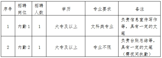 本次計劃招聘派遣工作人員2名,具體招聘崗位、人數和有關要求見表格,年收入約7.2萬元(含五險一金)。