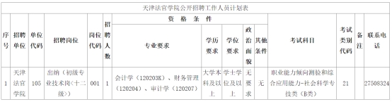 附件:《天津法官學(xué)院公開招聘工作人員計(jì)劃表》