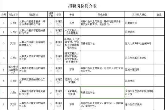 因工作需要,惠山區區級機關面向社會公開招聘編外工作人員,有關招聘事項公布如下: