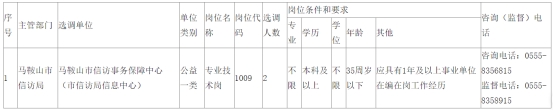 本次計劃面向全省公開選調(diào)事業(yè)單位工作人員2名。具體崗位及選調(diào)資格條件見《馬鞍山市信訪局所屬事業(yè)單位公開選調(diào)工作人員崗位計劃表》(見附件)。