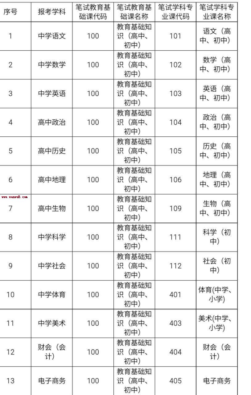 附件一: 2016年新教師招聘筆試學科對應(yīng)課程及代碼